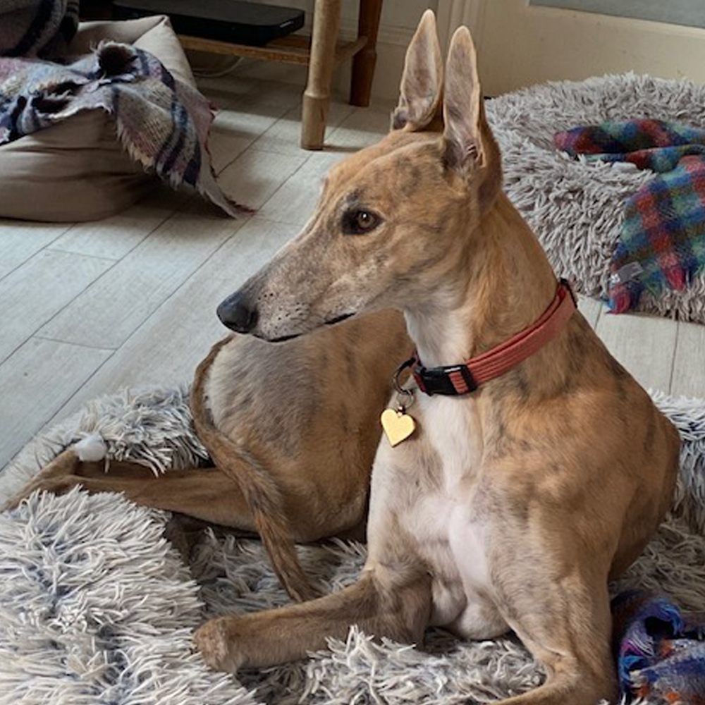 She loves getting out and about, especially trips to the pub or café, where she happily settles on her doggy mat. Willow travels well in the car and walks nicely on the lead.
