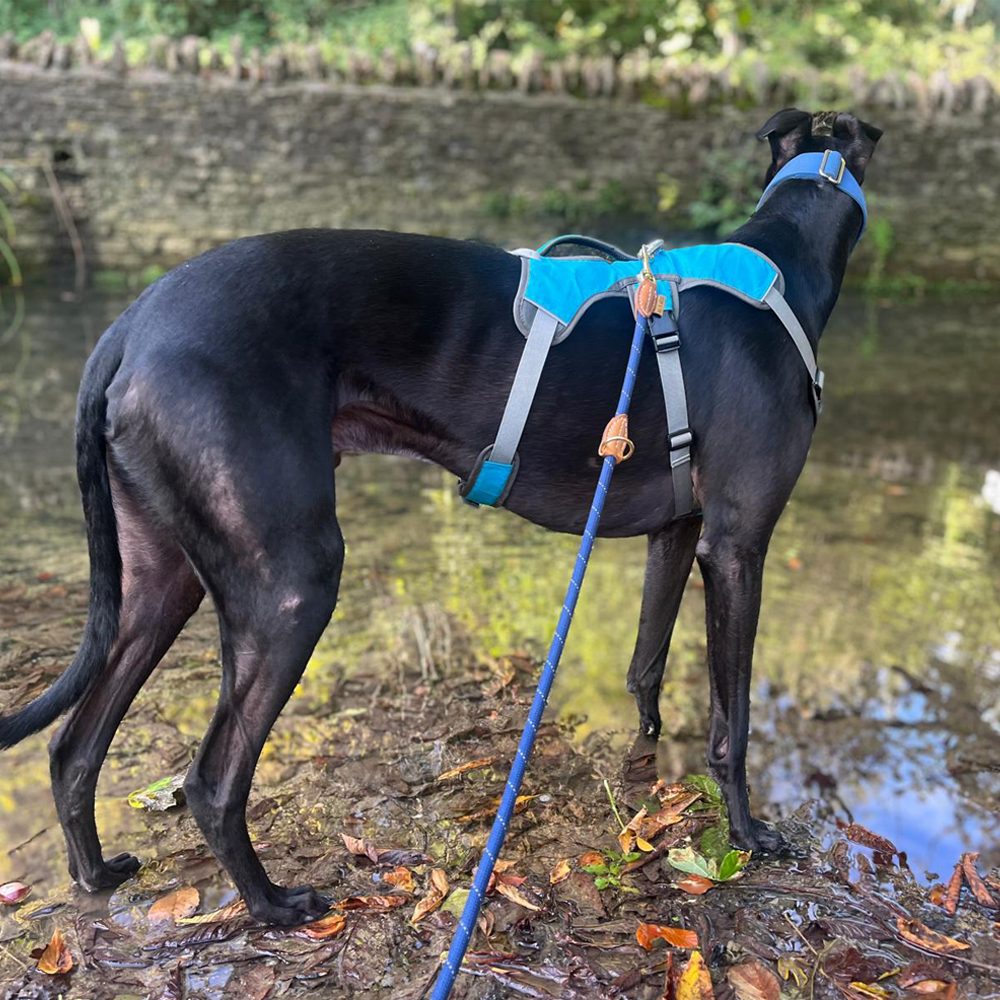 These DryDogs sighthound harnesses feature a unique third strap, designed to make them escape-proof. They are fully adjustable, ensuring a comfortable and secure fit for the dog.