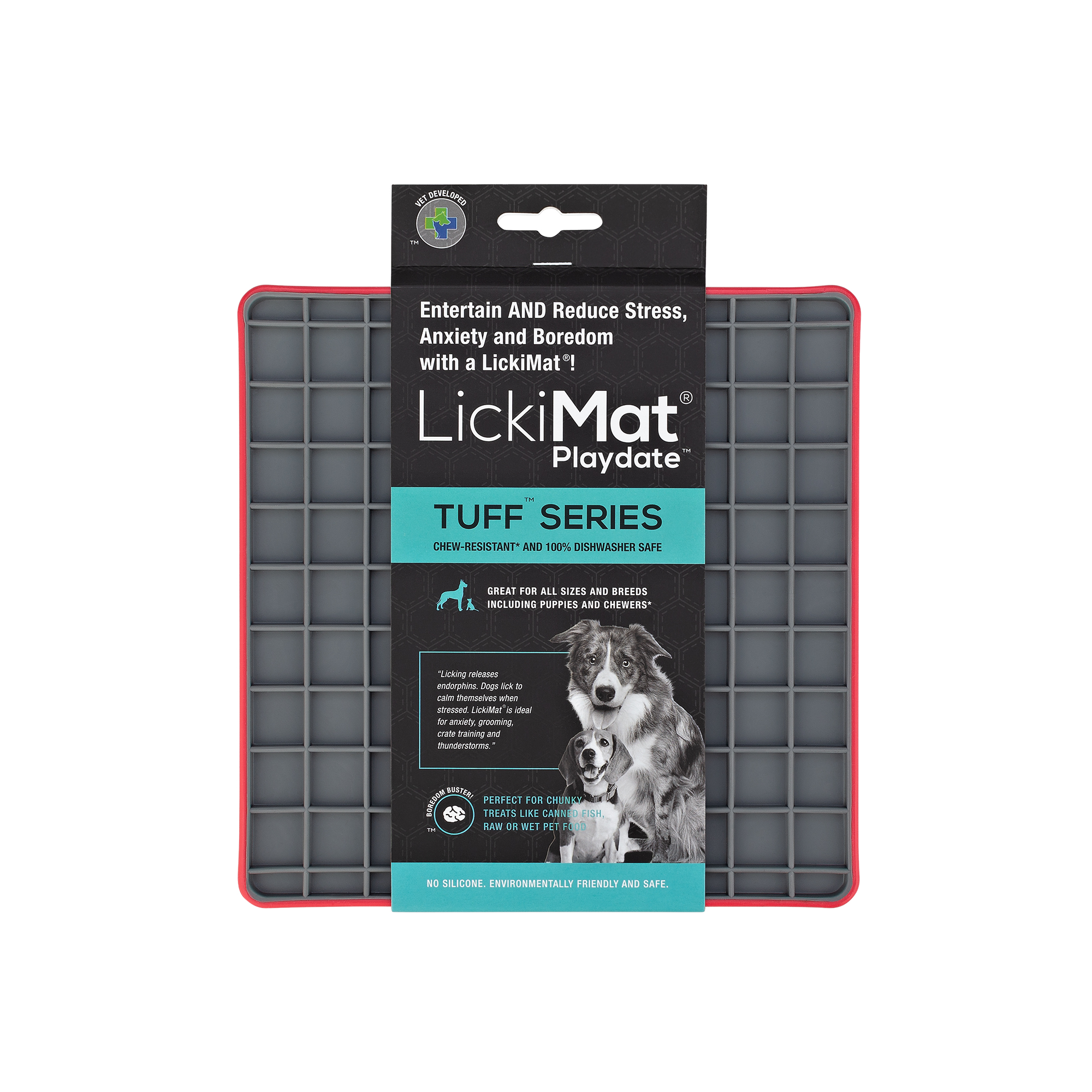 your licki mat is NOT a toy – don’t let dogs play with them and/or chew them. If your dog is a chewer, please always supervise the activity.